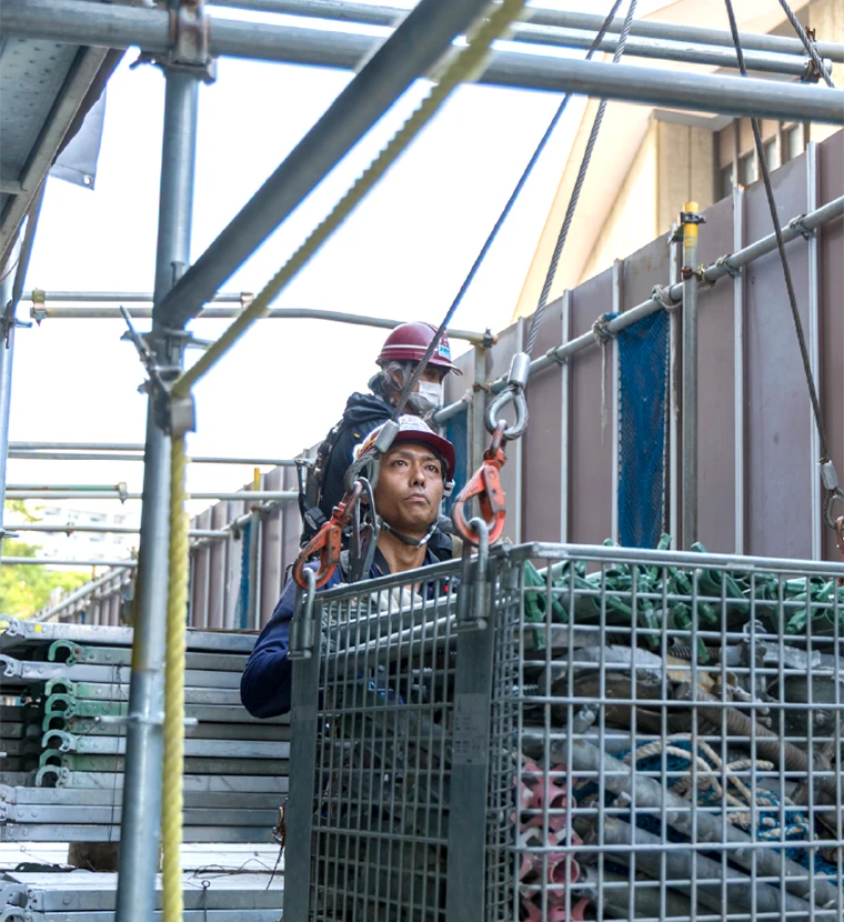 足場の建設や、コンクリートを打つなど様々な建設業務を行なっています。